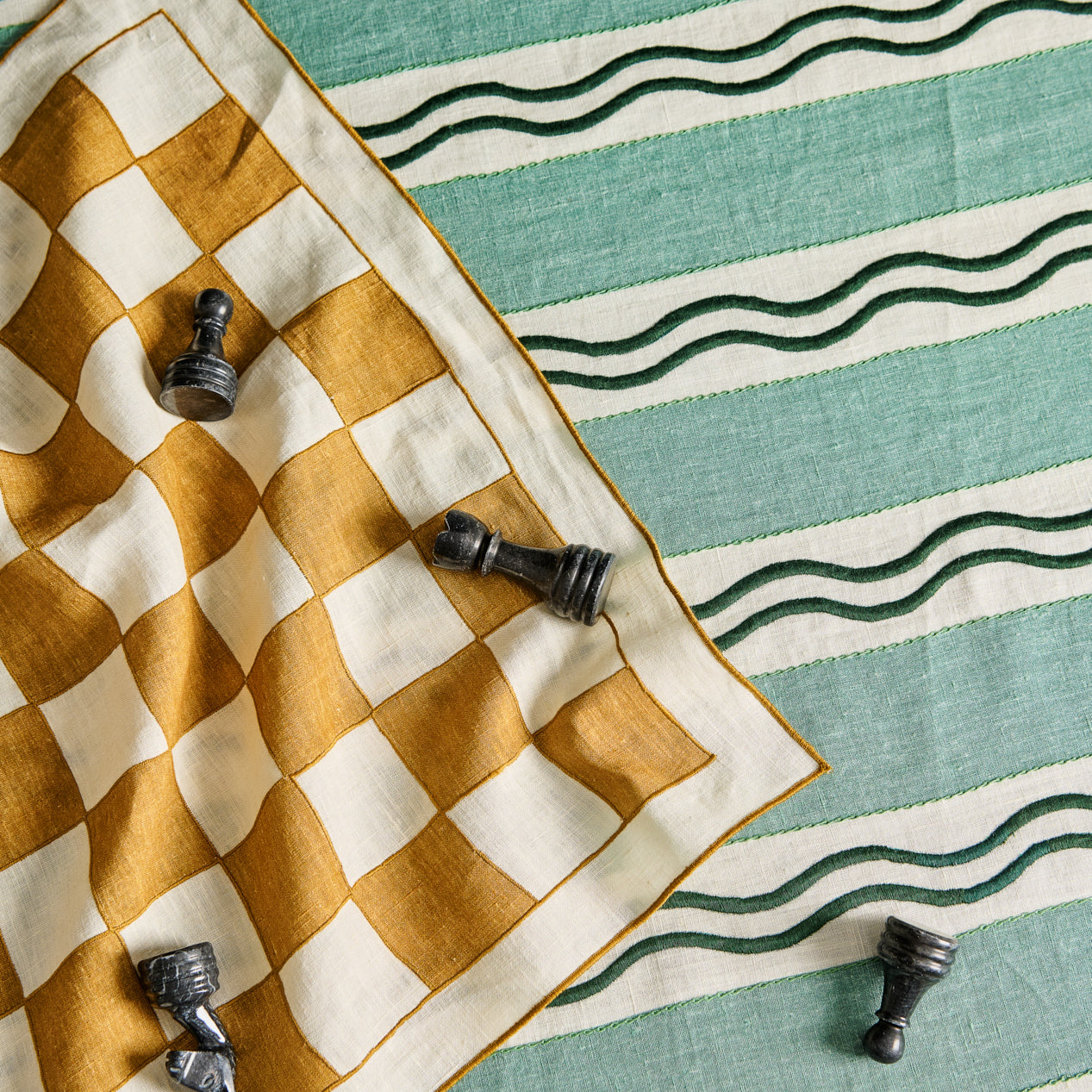 Backgammon Embroidered Linen Napkins (Set of 4)
