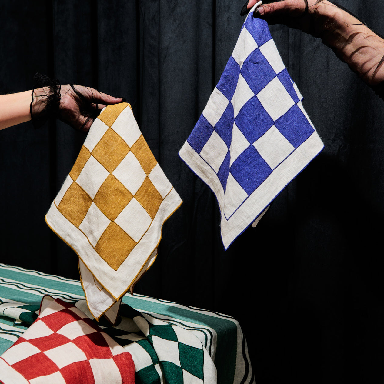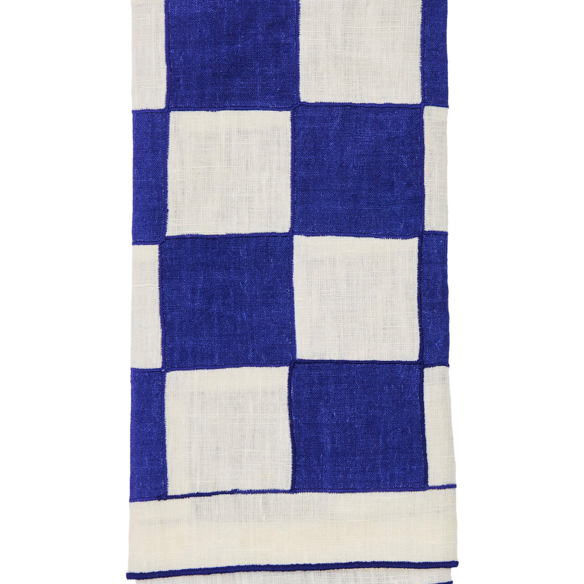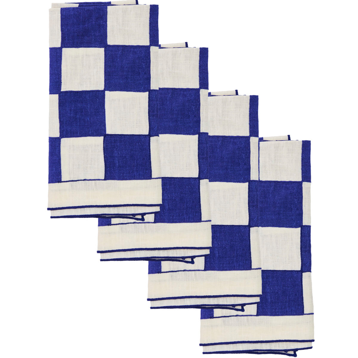 Backgammon Embroidered Linen Napkins in Blue (Set of 4)