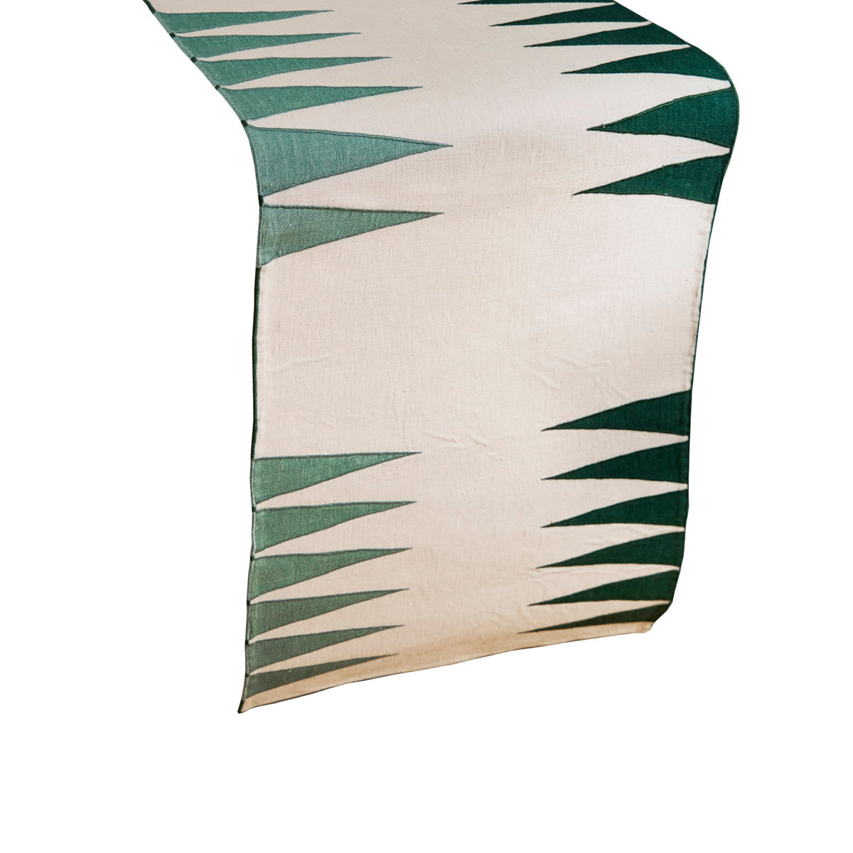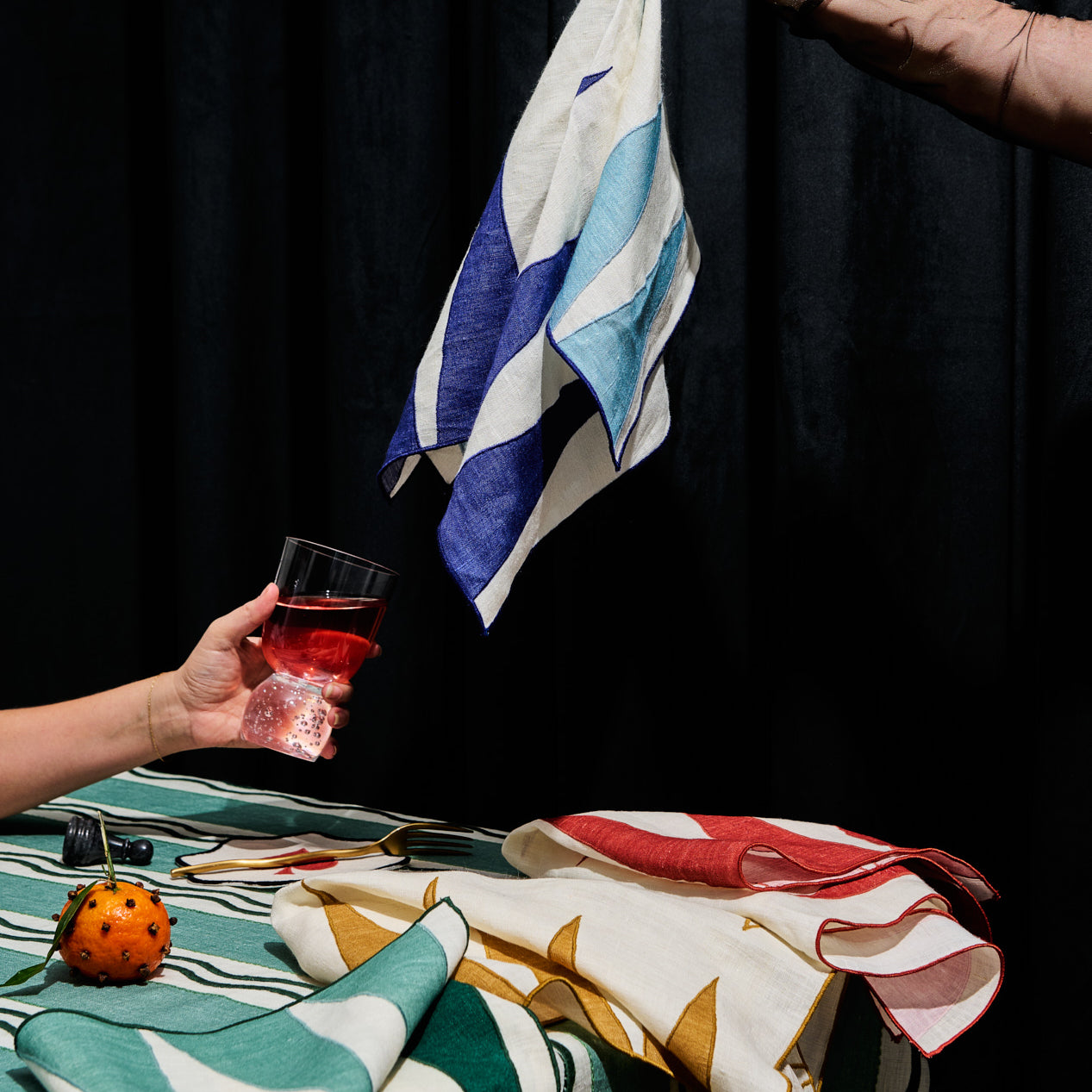 Monaco Stripe Linen Embroidered Tablecloth in Green