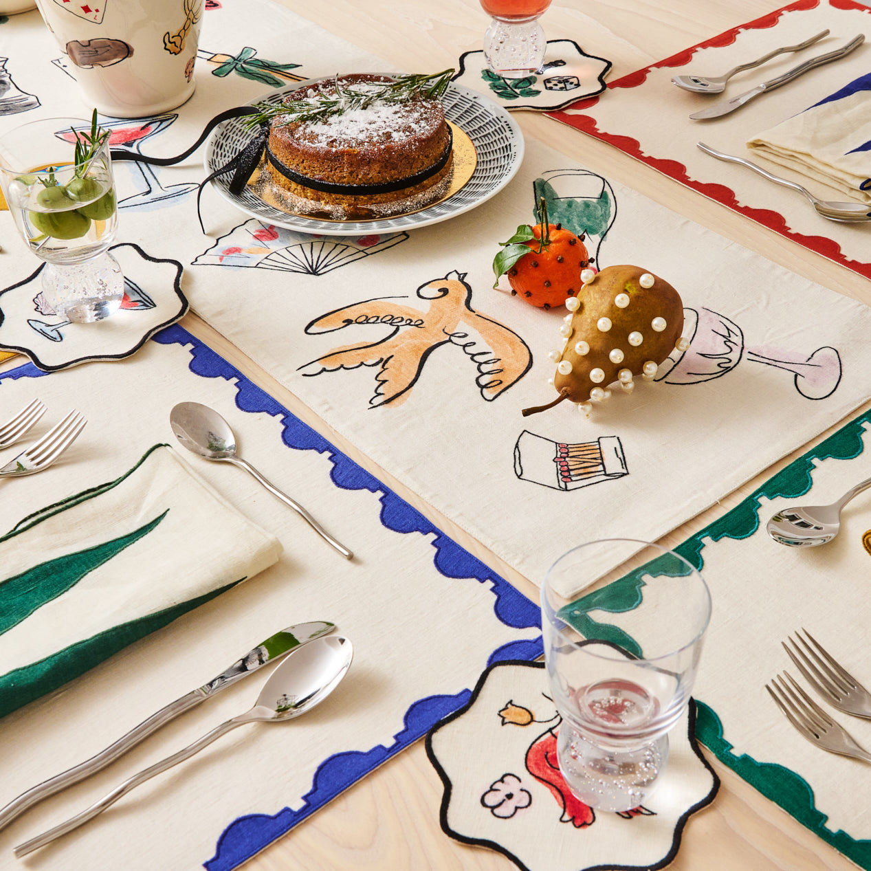 1 reviewBauhaus Embroidered Linen Napkins Set of 4