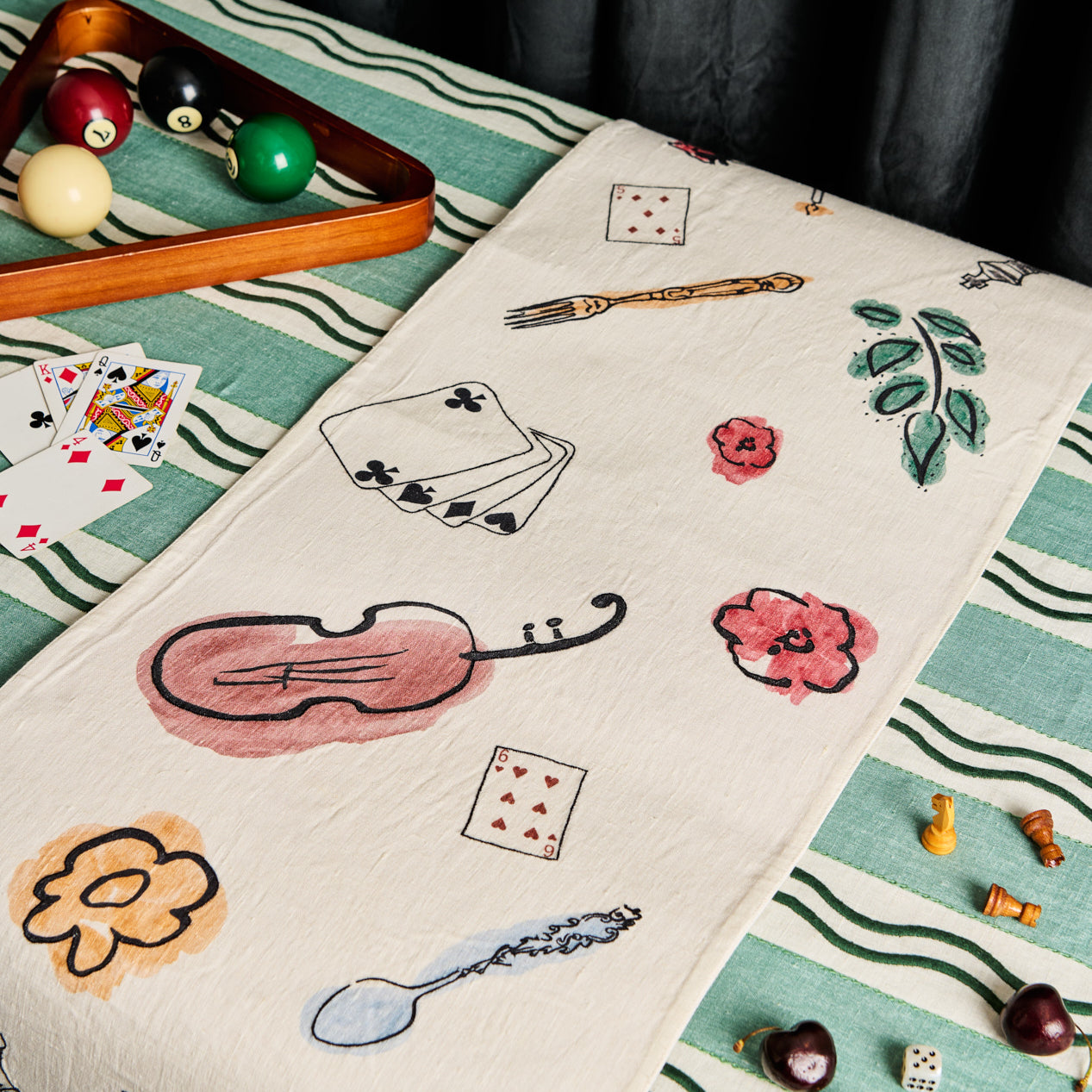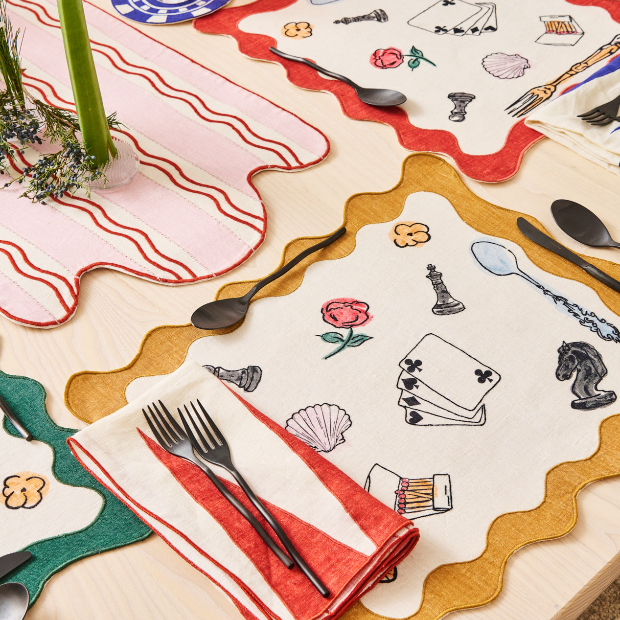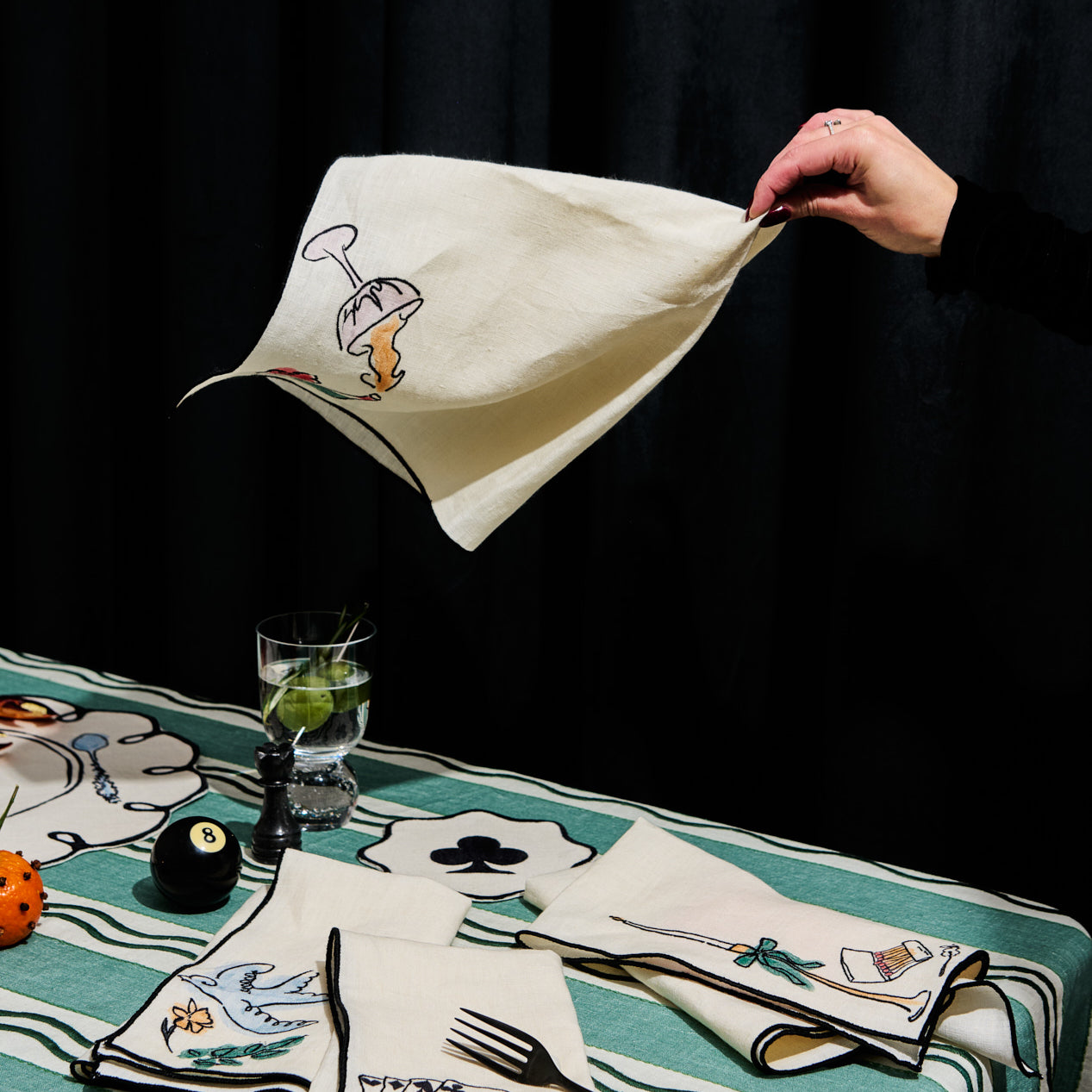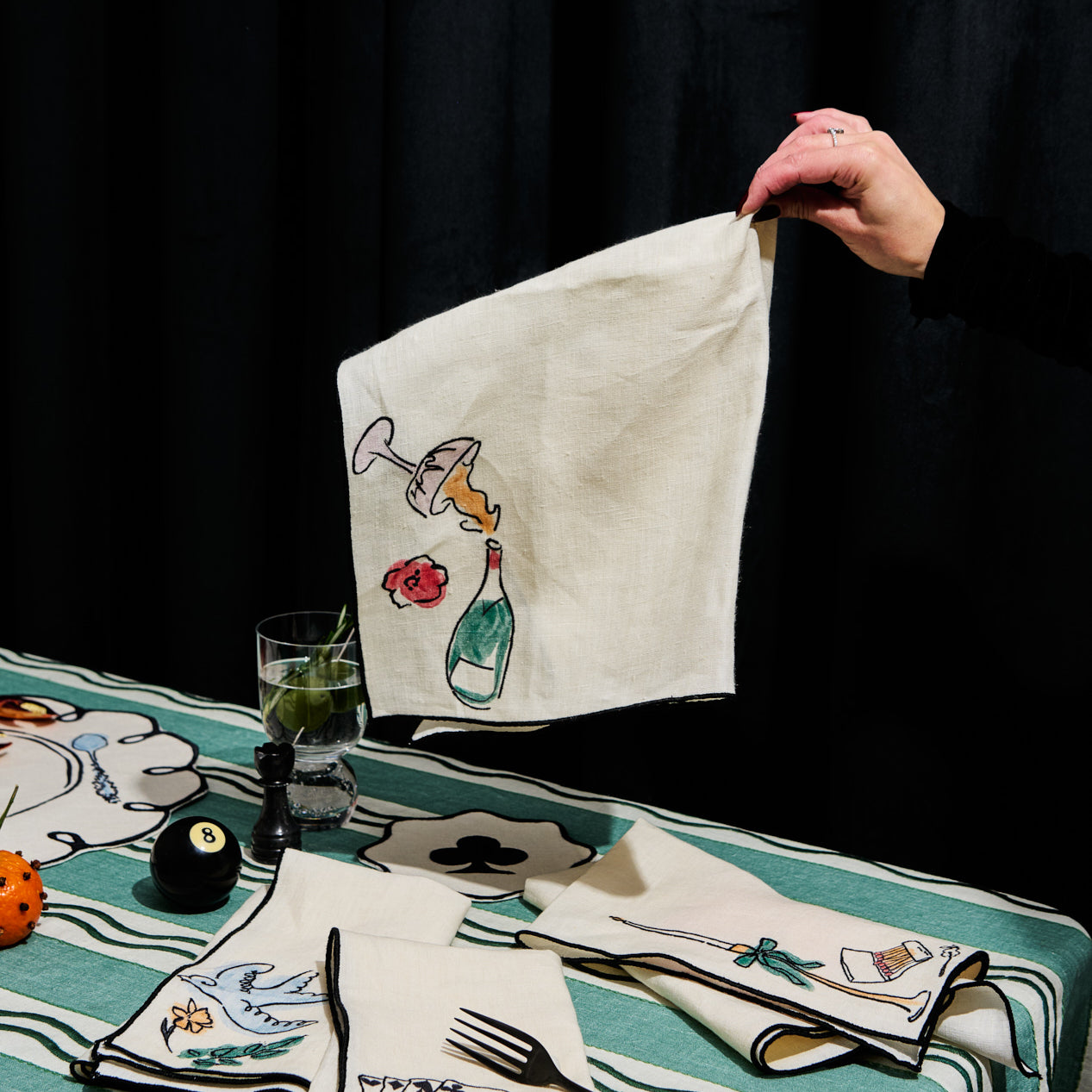 Backgammon Embroidered Linen Napkins (Set of 4)