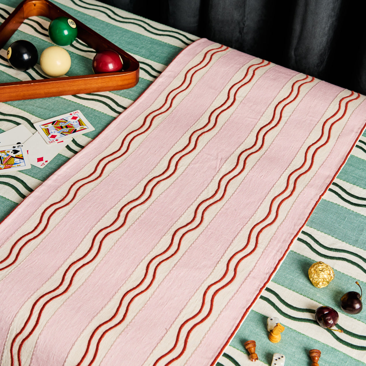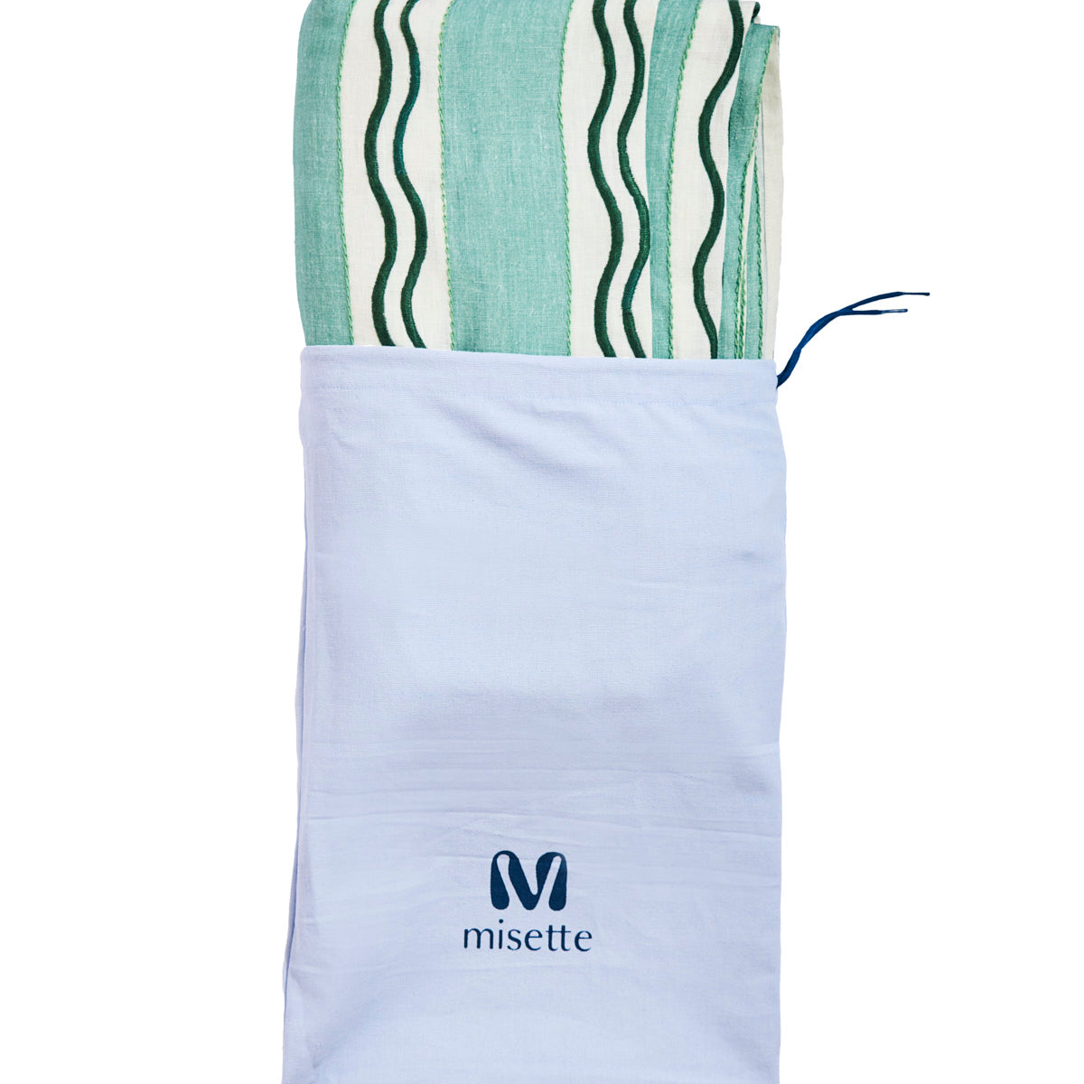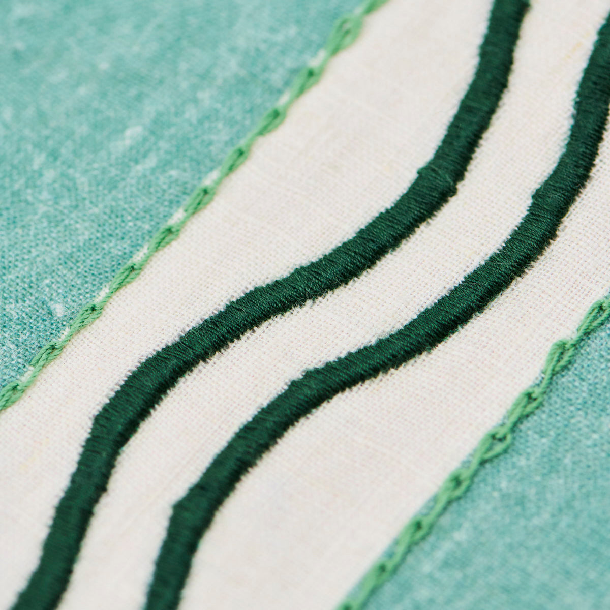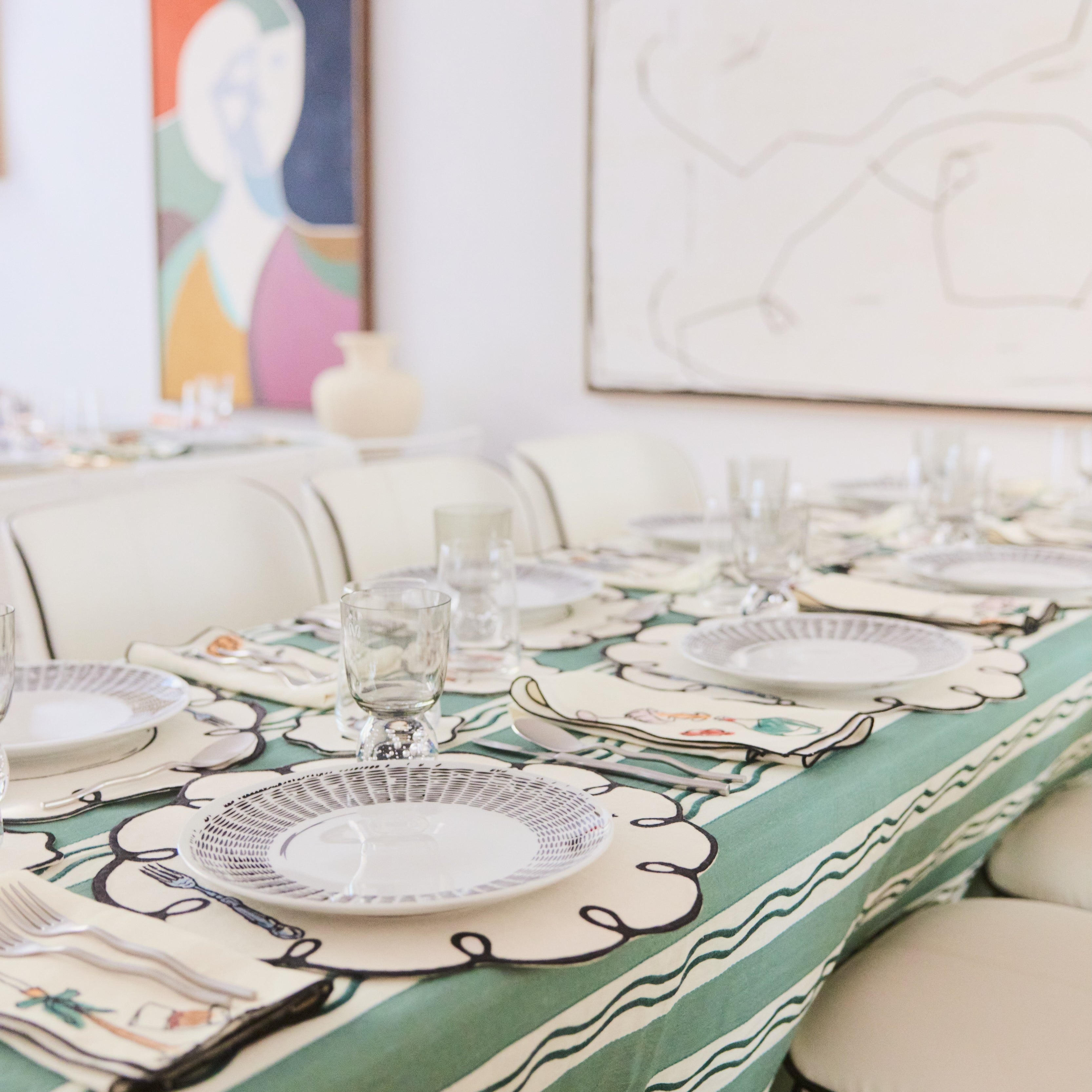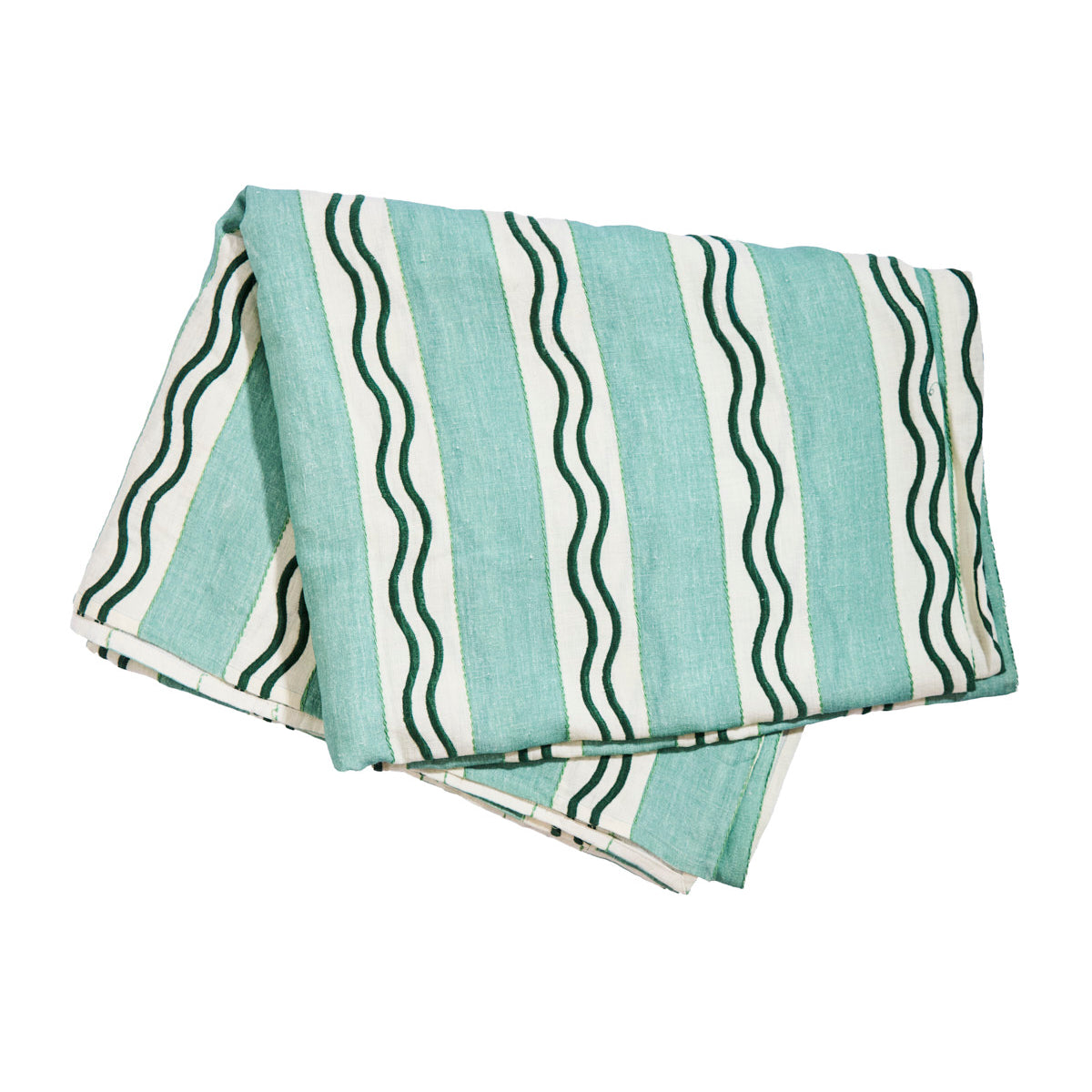Monaco Stripe Linen Embroidered Tablecloth in Green