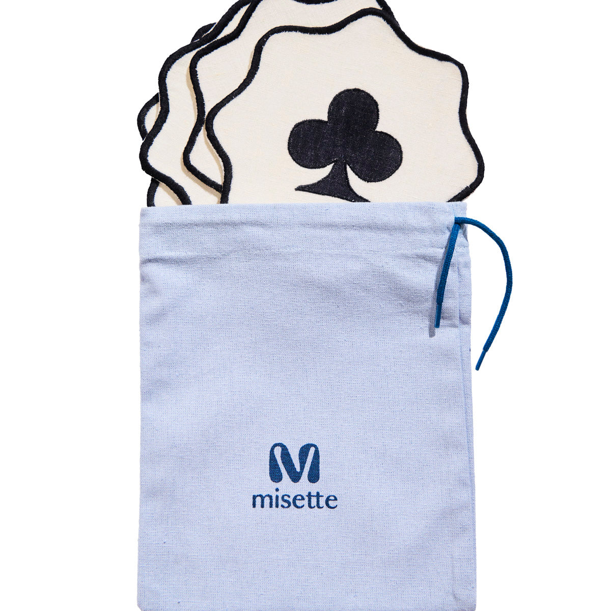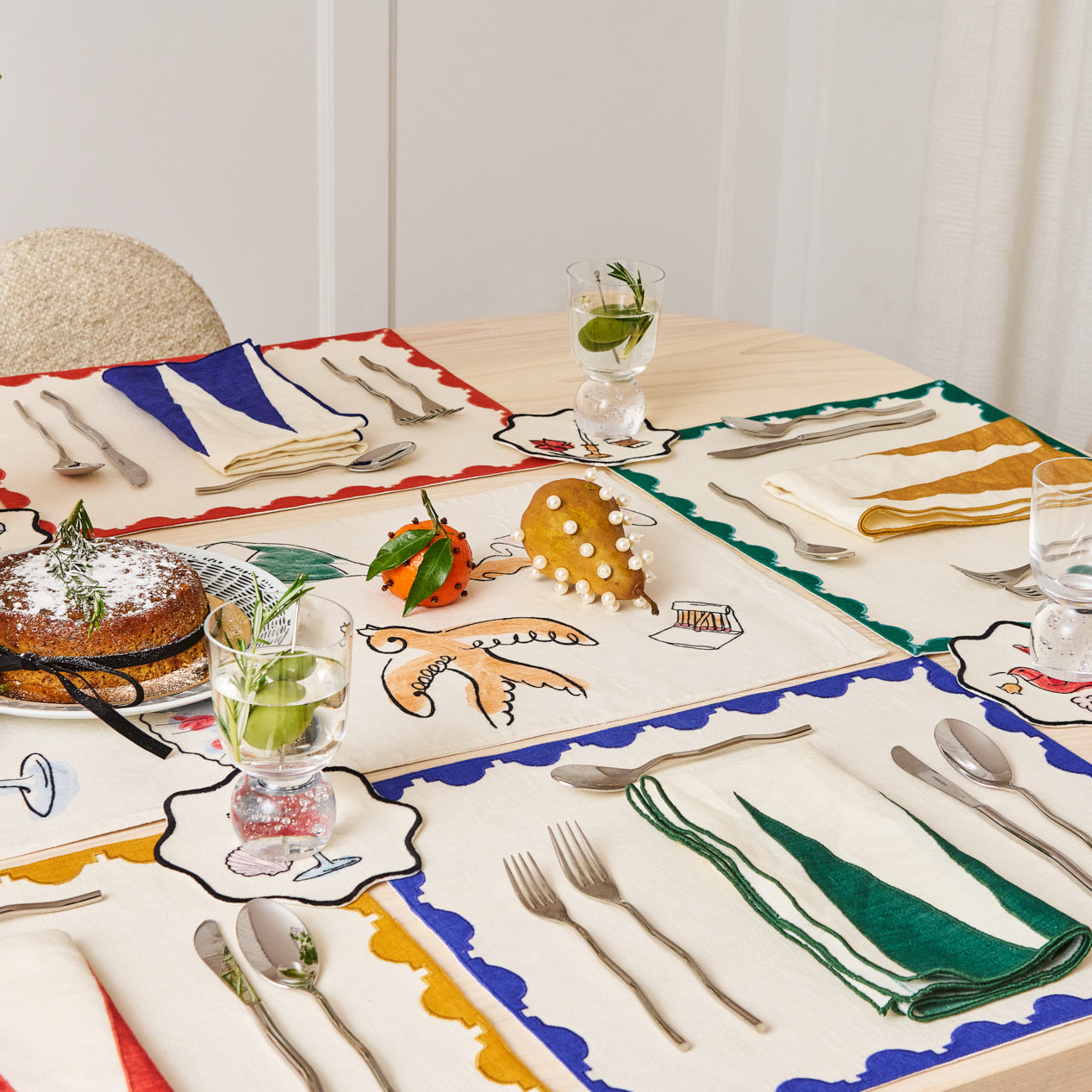 Colorblock Embroidered Linen Placemats in Blue (Set of 4)
