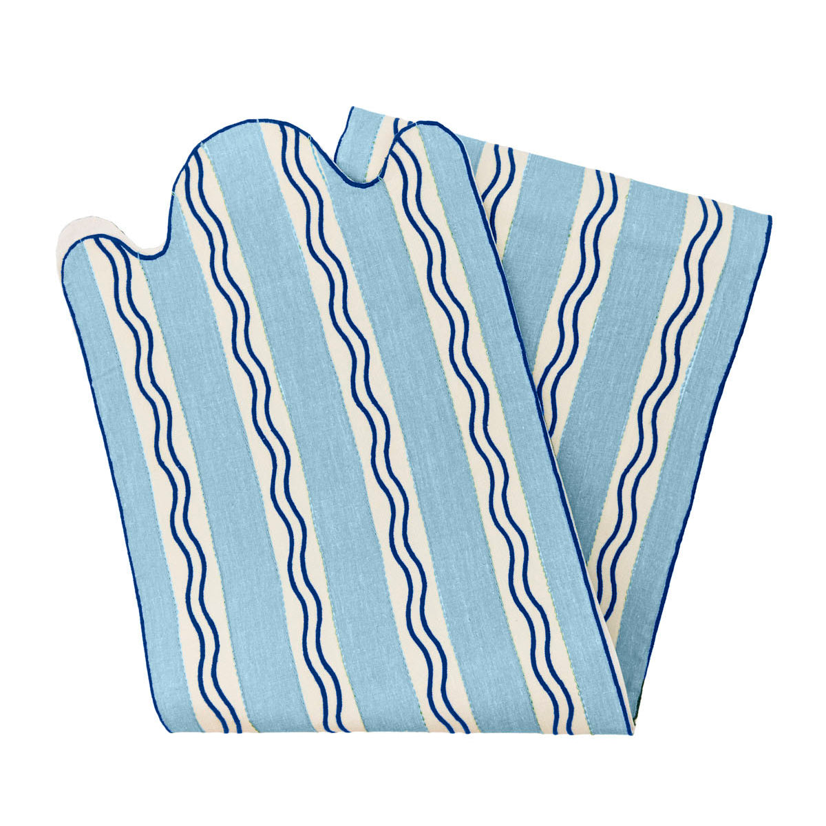 Monaco Stripe Linen Embroidered Tablecloth in Blue