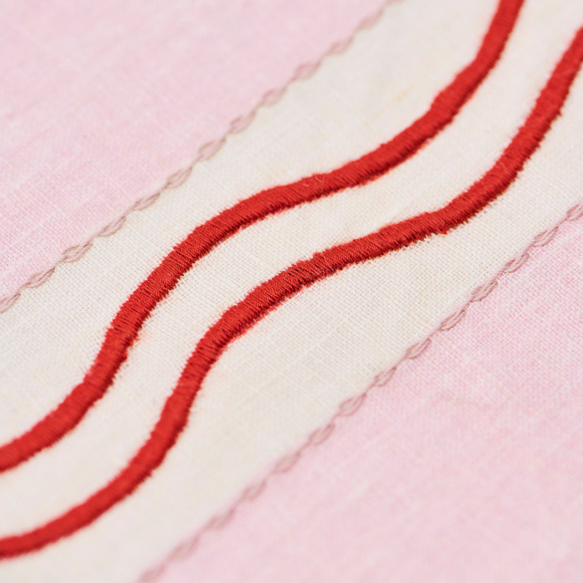 Monaco Stripe Linen Embroidered Tablecloth in Pink