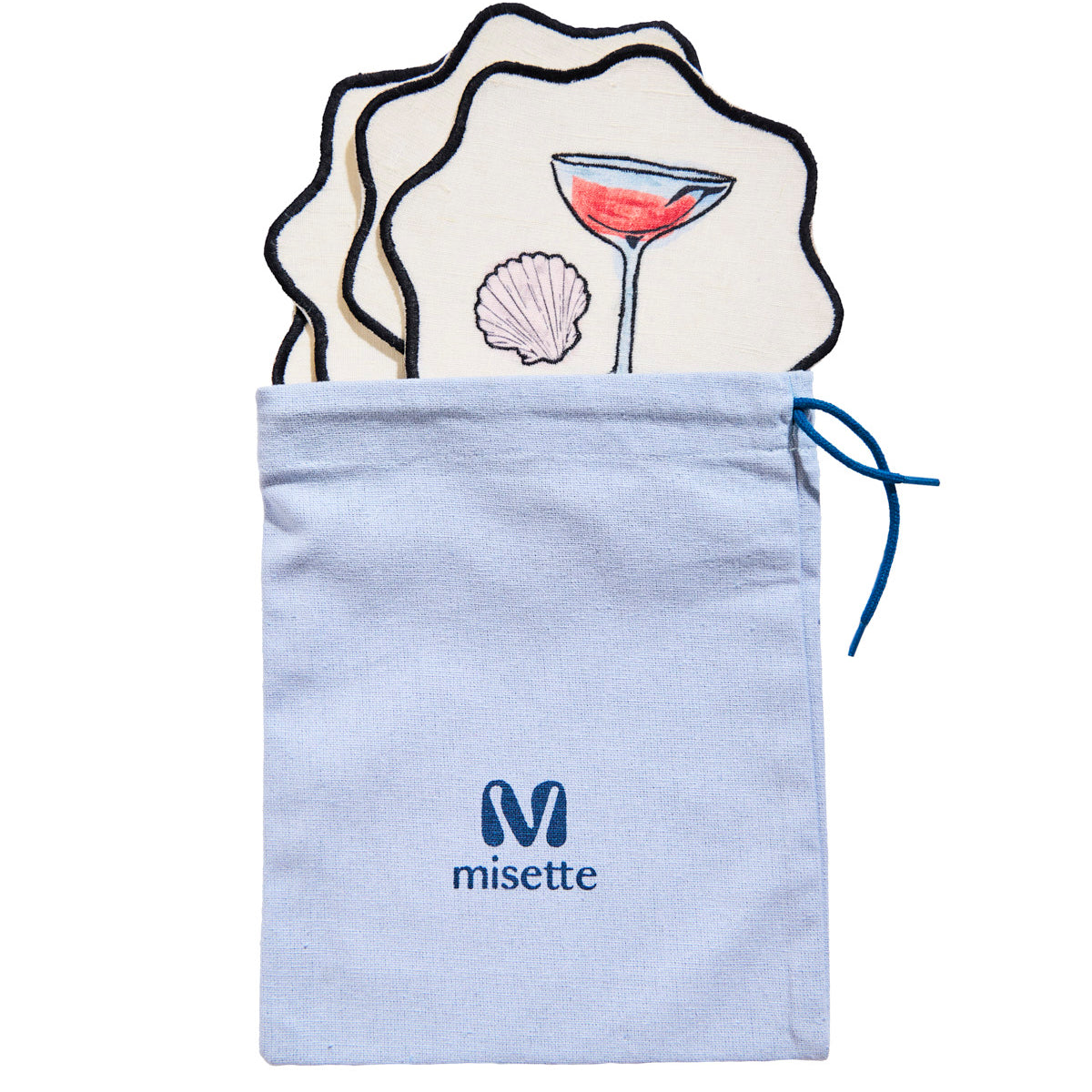 Salon Motif Scallop Embroidered Linen Placemats Set of 4