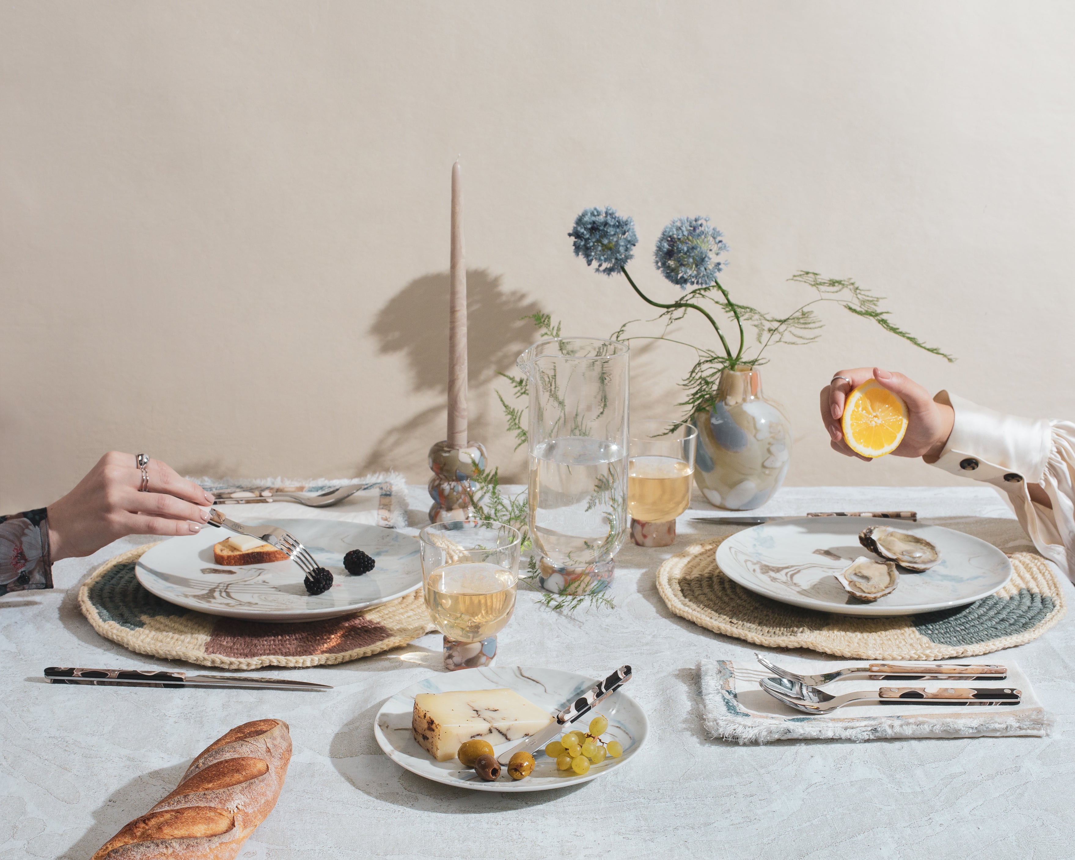 Natural Hand-Marbled Tablecloth