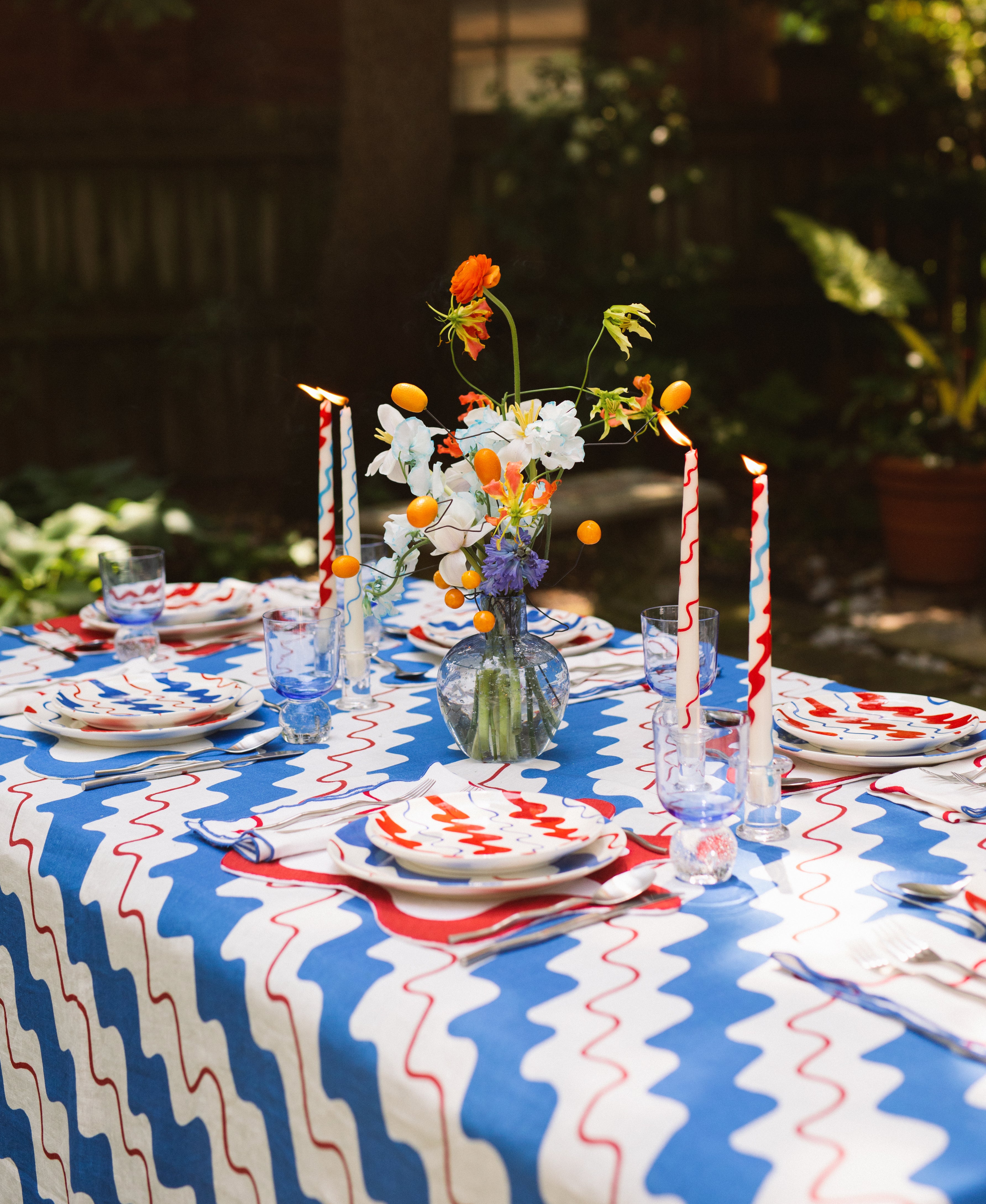 Stripes meet squiggles on this 100-percent linen tablecloth. Lay it out as a backdrop to a photo-worthy dinner or an elevated take on the picnic blanket—you’ll be looking for excuses to show it off.