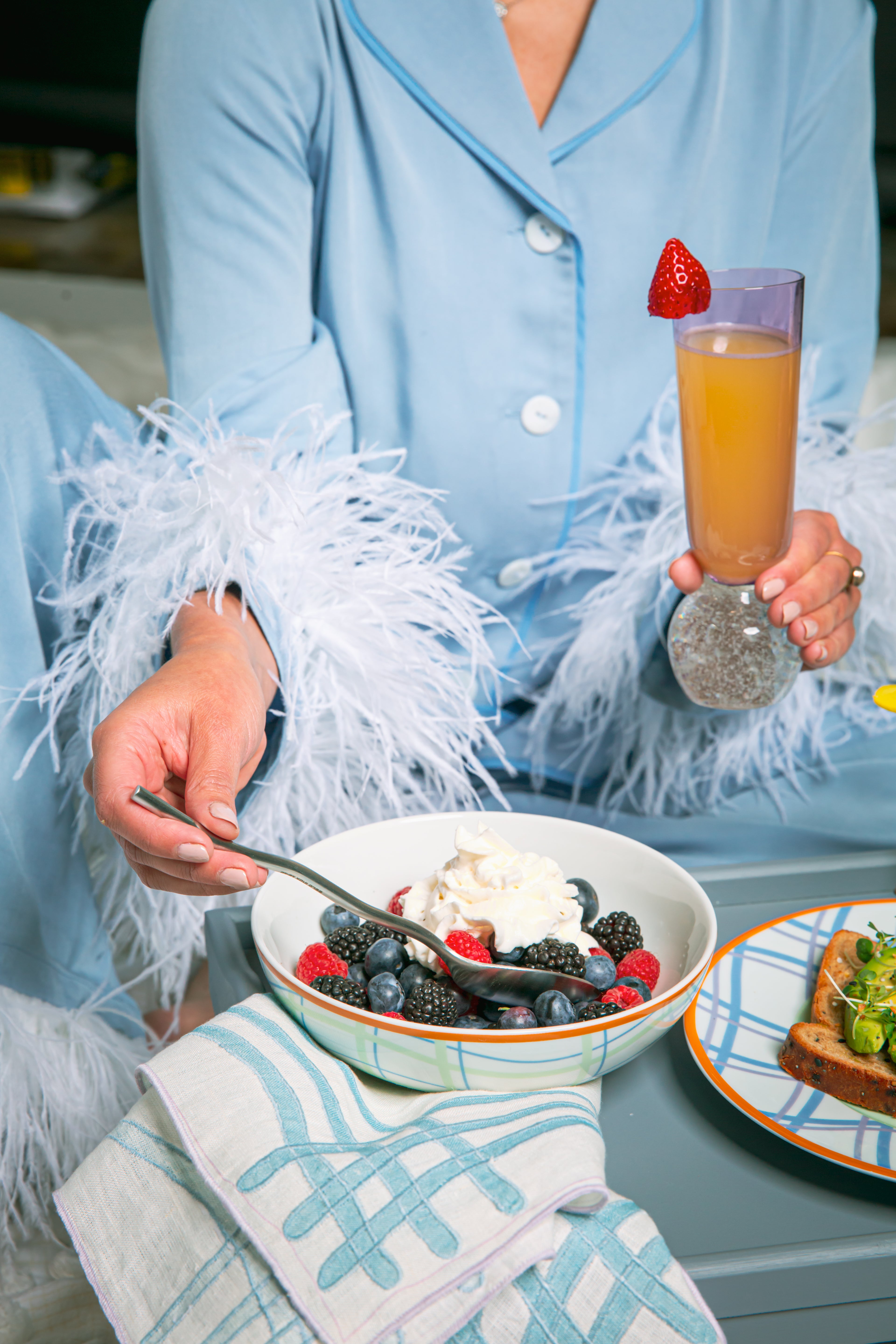 Linen napkins are one of the easiest ways to transform your tablescape, especially when they’re printed with this fresh twist on tartan. High-quality linen finished with lavender picot-embroidered edges make this eco-friendly choice extra luxe.