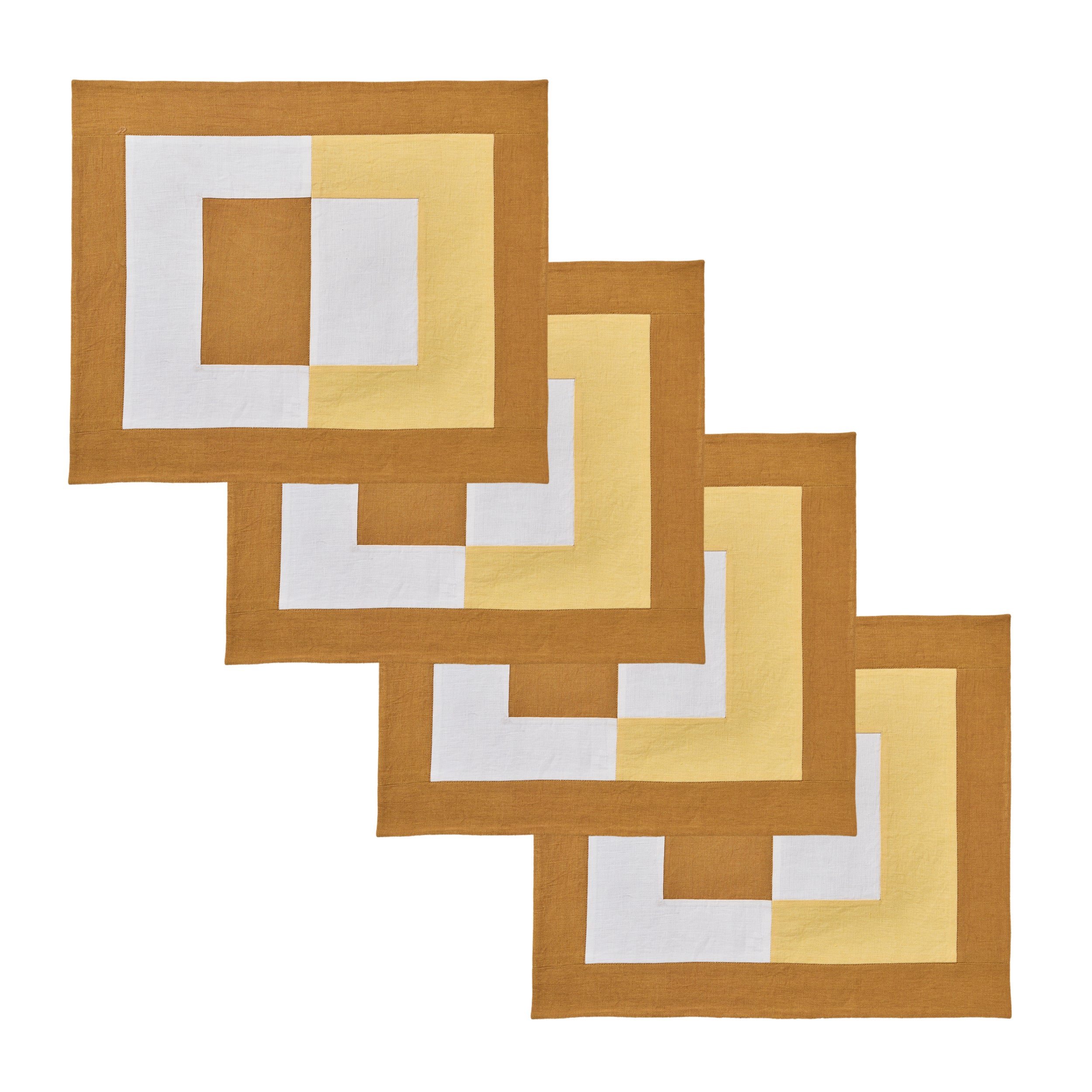 Colorblock Embroidered Linen Napkins in Amber (Set of 4)
