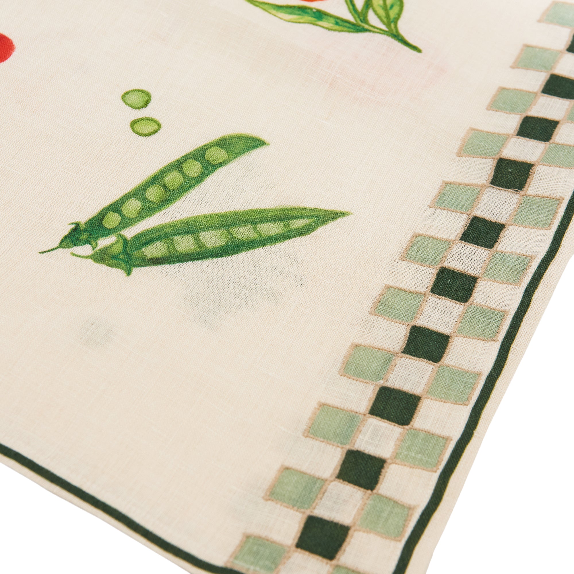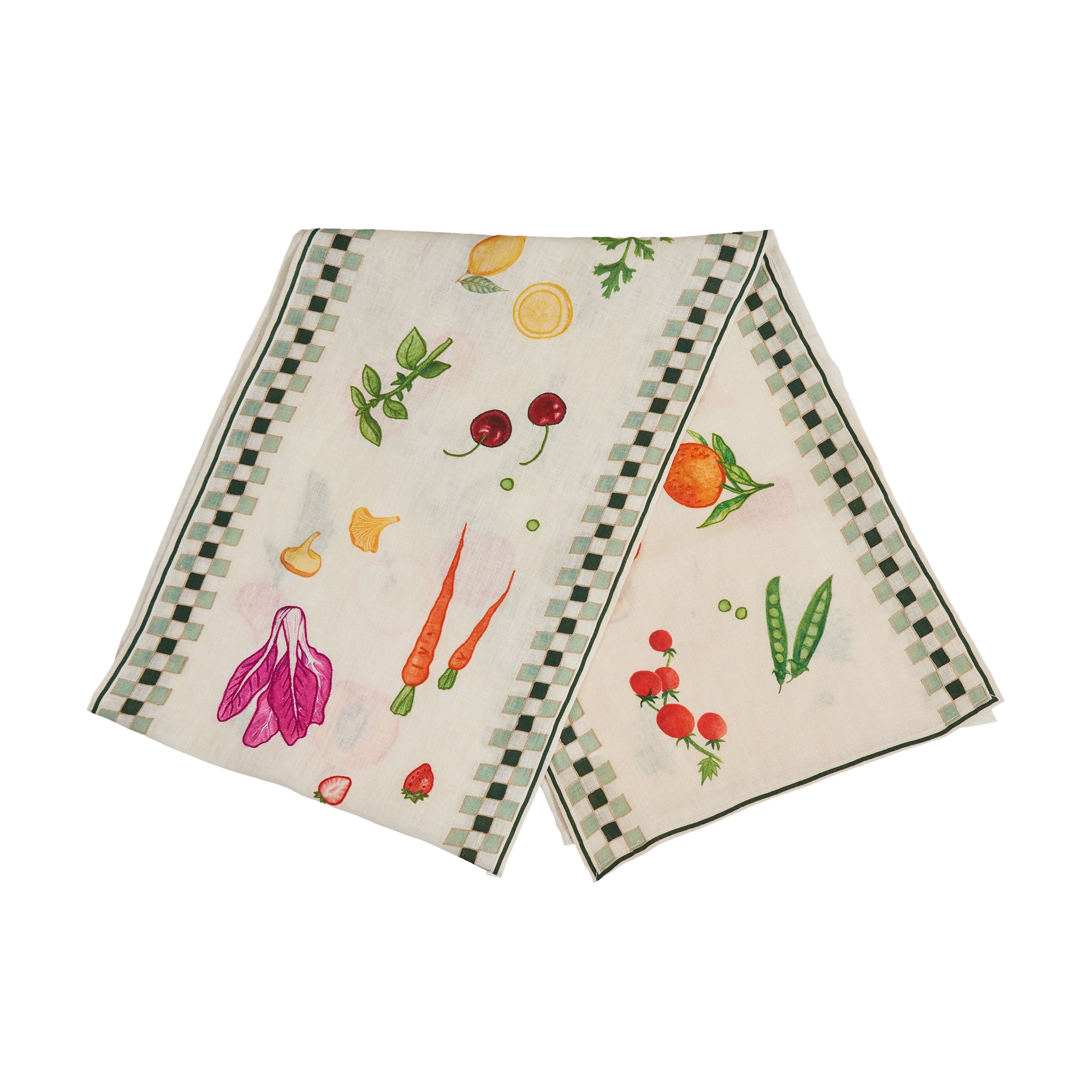 Still Life Linen Embroidered Double Checker Runner in Green