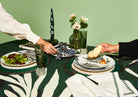 Table Tip: Turn up the drama with tall, flickering candles (try any of our leafy hand-painted pairs for a perfect match).