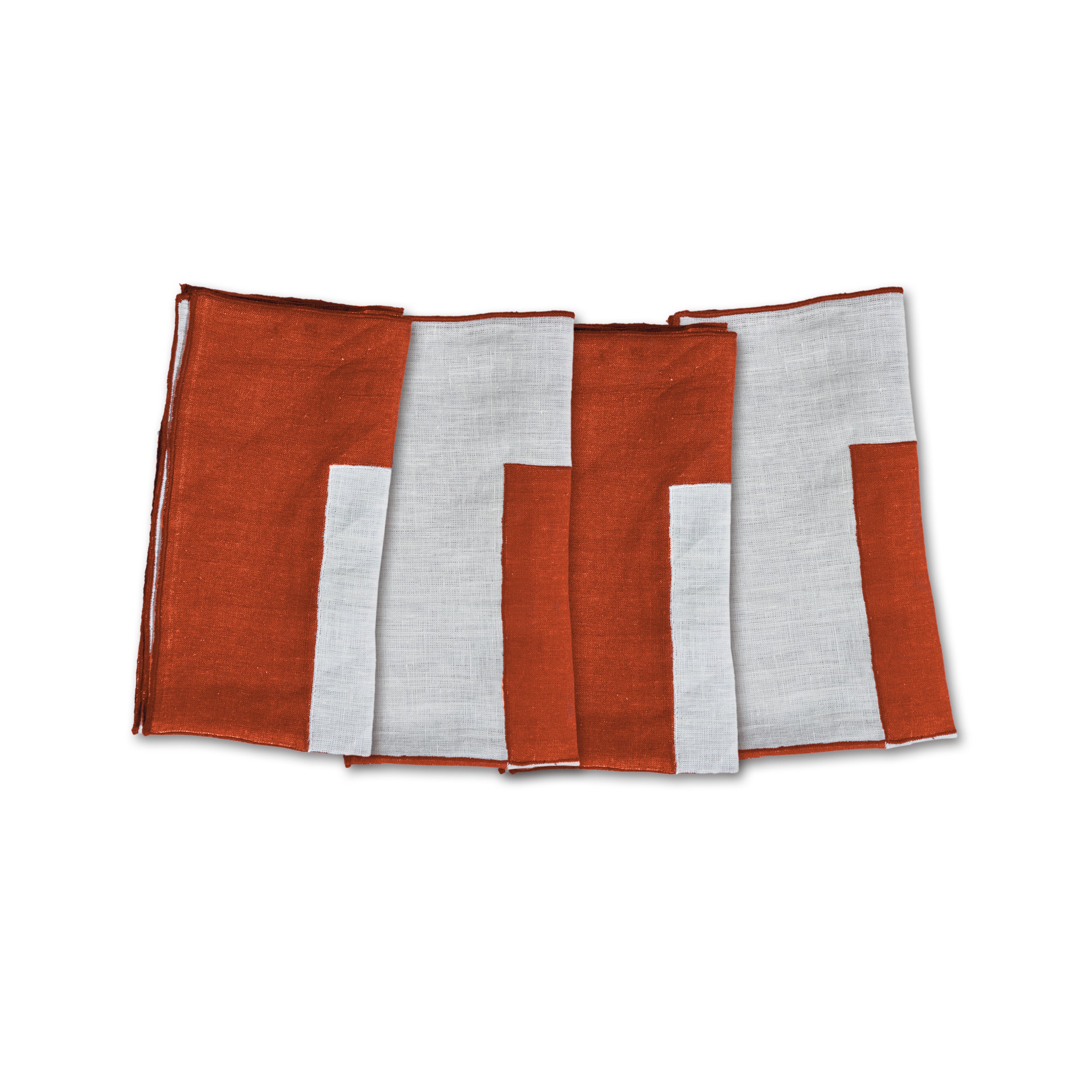 Colorblock Embroidered Linen Napkins in Rust (Set of 4)