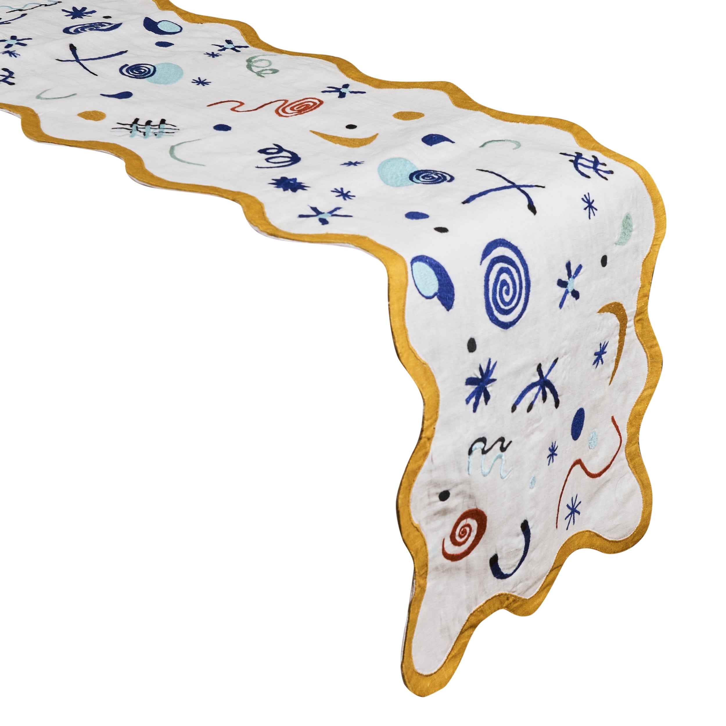 Still Life Linen Embroidered Ribbon Runner in Blue