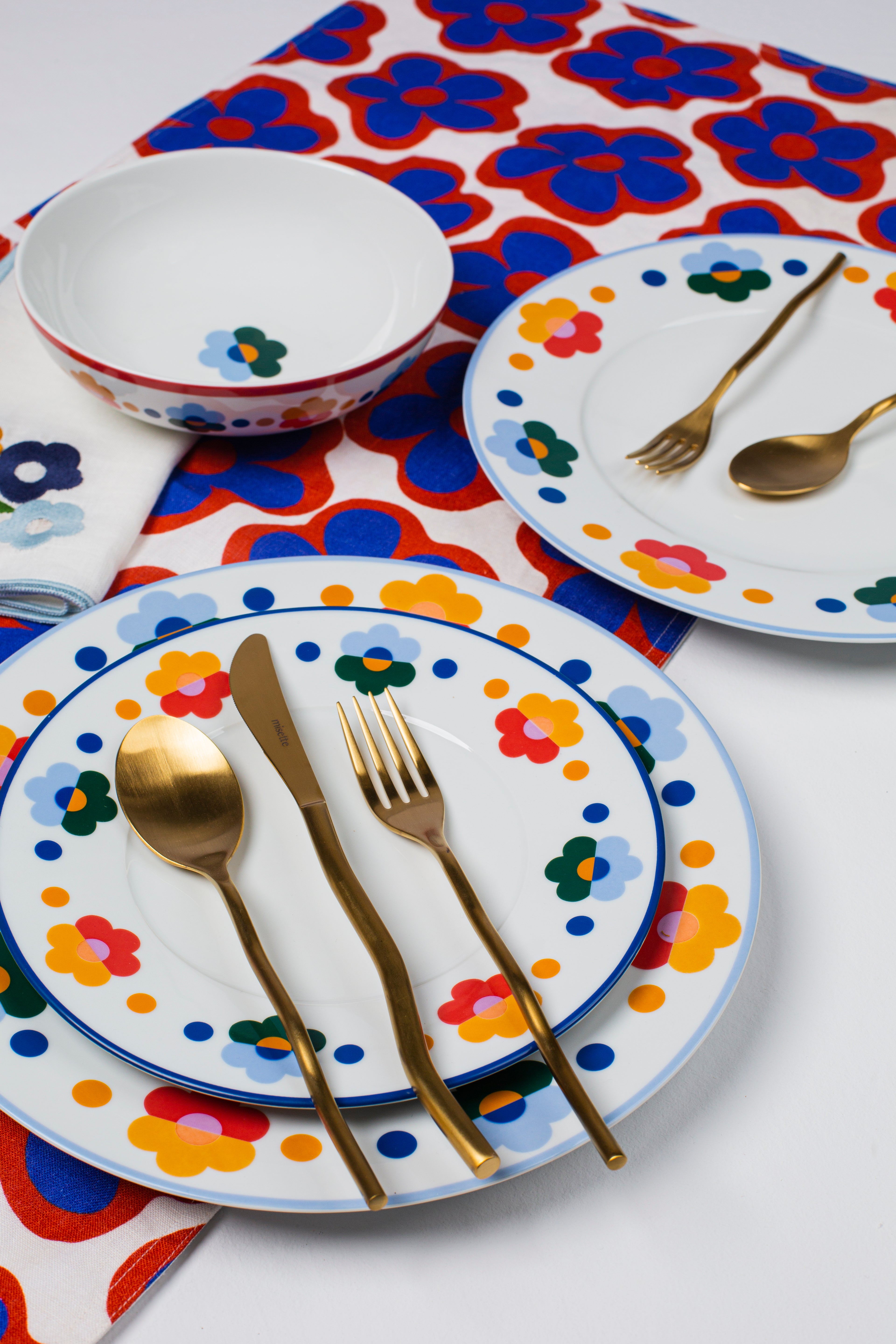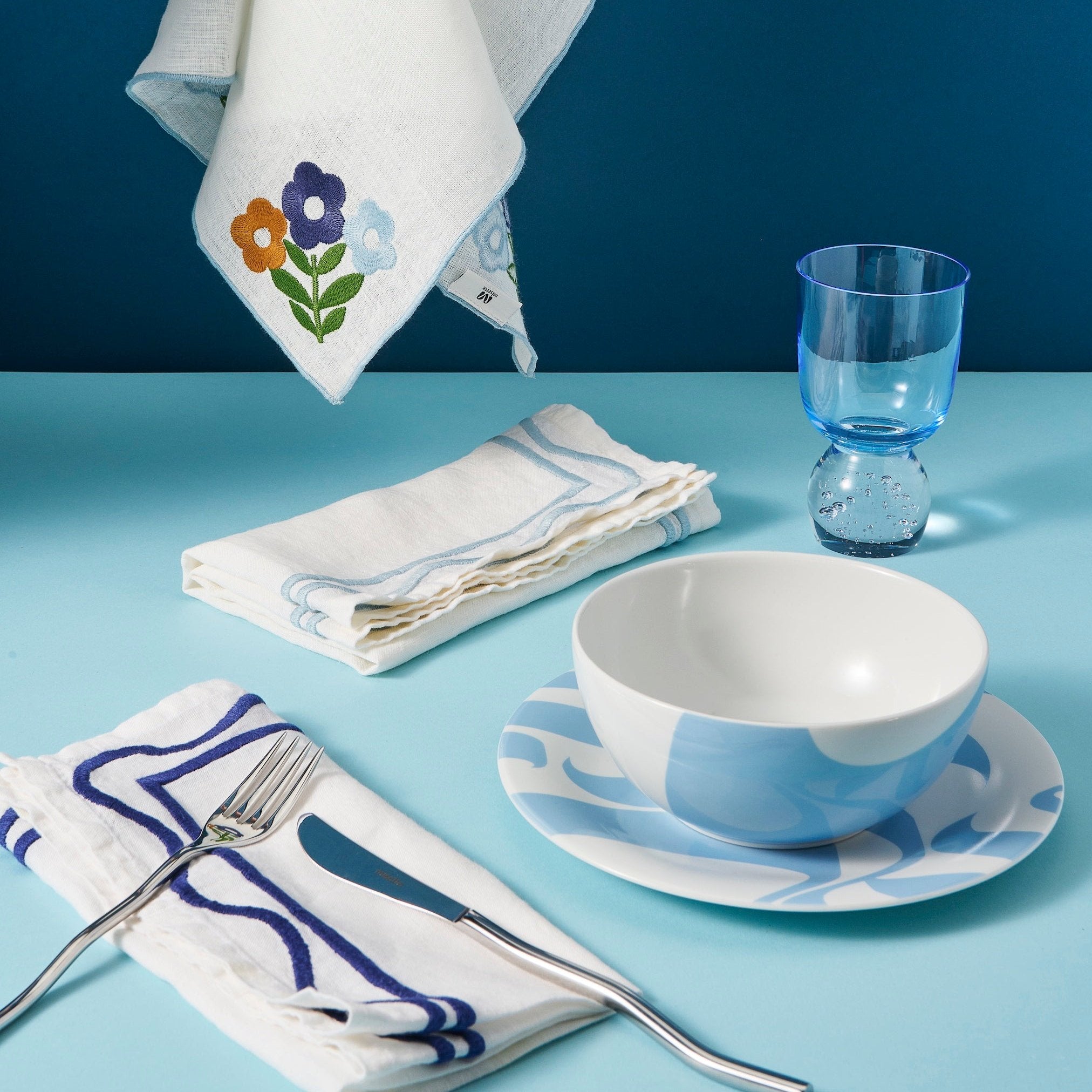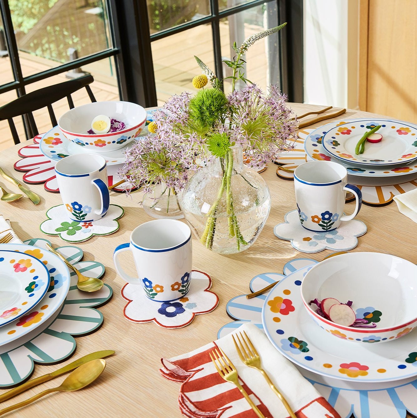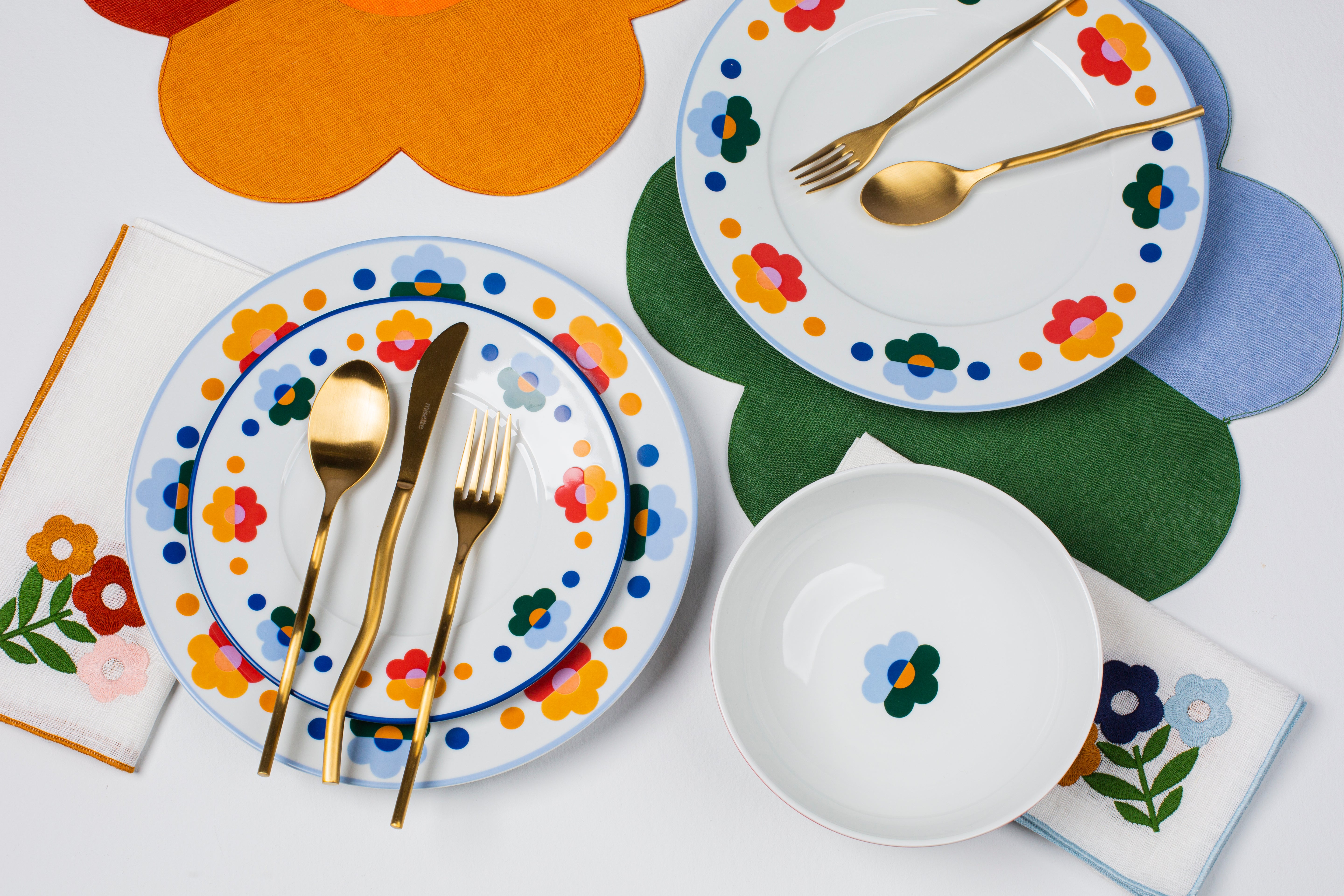 Add pop to any meal with The Floral Collection’s graphic motif and high-contrast colors. Patchwork placemats and throwback hues nod to the ’70s, with a hint of Matisse-inspired collage along napkins, tablecloths and runners. Whether you’re setting up for brunch or an all-out dinner, The Floral Collection serves up a feel-good side of nostalgia.
